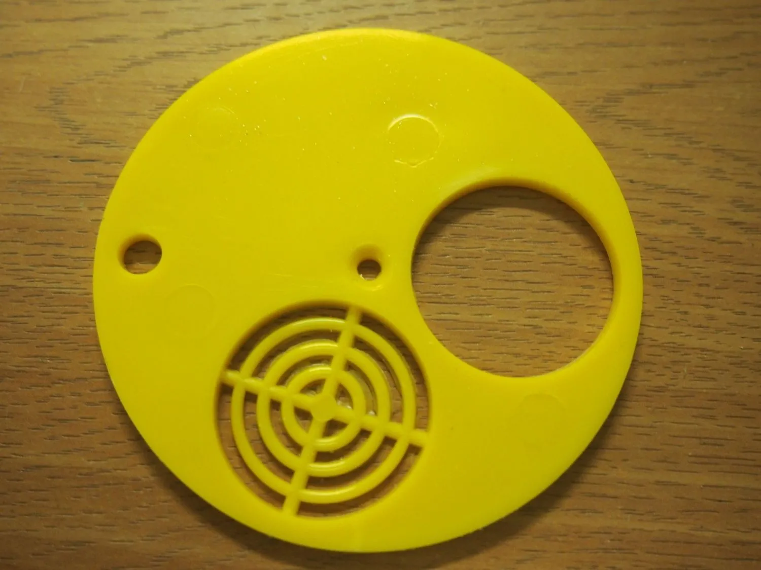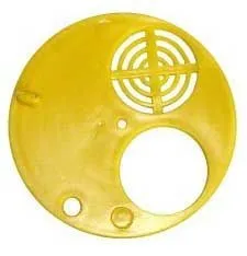 Заградитель летковый круглый-это задвижка для ограничения размеров верхнего круглого летка.Состоит из одной круглой пластины из полистирола.Поворотом пластины меняются положения в зависимости от назначения:от полного закрытия летка,до полного его открытия.